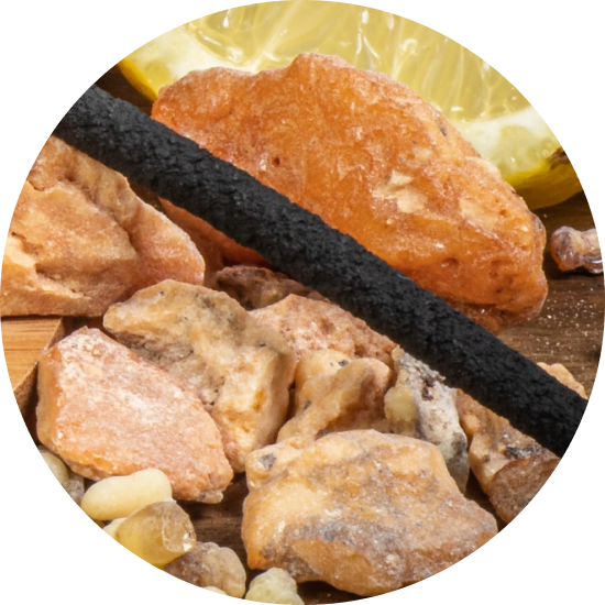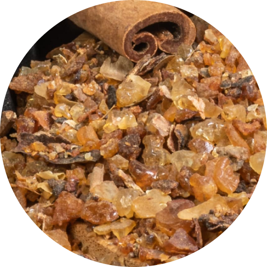 Jako vonné látky ve směsích používáme pryskyřice smrku ztepilého, nebo olibanum, myrrhu, benzoe, skořici.