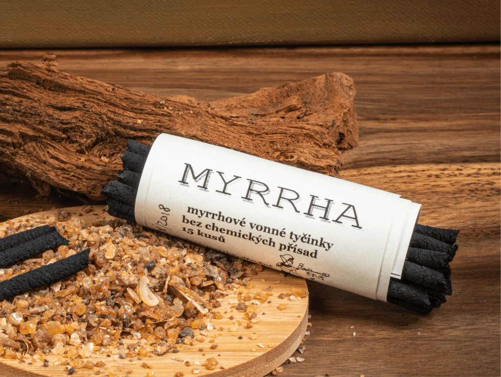 Své využití nenašla jen jako kadidlo. Ve starověku se lidé natírali myrrhovým olejem a ve středověku byla myrrha uznávaným lékem proti plísním (candida) v trávicím traktu a dutině ústní.