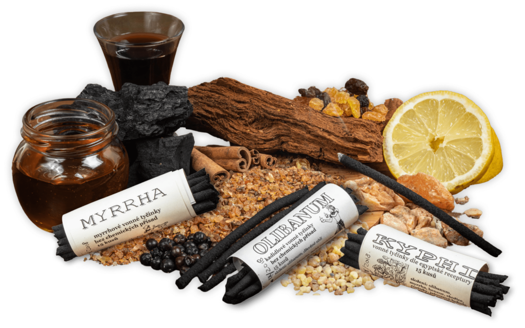 Některé ingredience pro jejich výrobu velmi šetrně a pečlivě sbíráme v okolních lesích, jiné kupujeme ve specializovaných prodejnách, kam se dováží z Egypta, Izraele, nebo třeba Ománu.